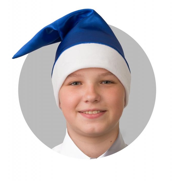 Новогодний колпак насыщенного синего цвета сделает торжество незабываемым. Он может стать частью полноценного карнавального или театрального костюма. В комплекте нет бороды, поэтому колпак можно применять для тематических вечеринок в новогоднюю ночь. Такие мероприятия обретают особую популярность среди взрослых и детей. Сделан из сатина, поэтому презентабельно выглядит, не садиться, и не теряет своего яркого цвета. Именно поэтому колпак послужит долгое время, это важно, если изделие покупают руководители театральных кружков.