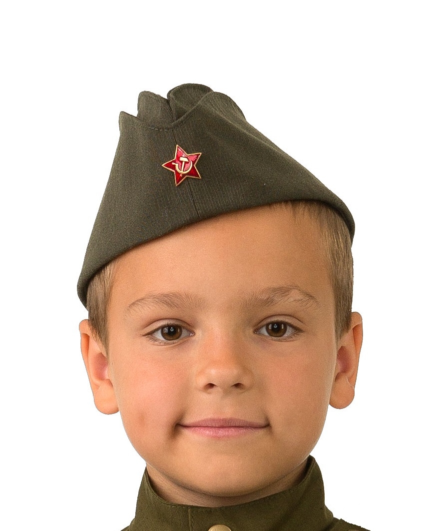 Пилотка солдата Батик 8008. Воспитать в детях уважение, благодарность и любовь к Родине - вот задача каждого родителя. Советская пилотка солдата образца Второй Мировой войны является одним из символов дня Победы. Она отлично подойдет для костюмированных мероприятий военной тематики, праздников 9 мая и 23 февраля.